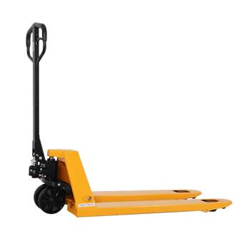 The TORY CARRIER Pallet Jack is designed for heavy-duty lifting and transporting pallets with a 5500 lbs load capacity and 48”L × 21”W forks. It features a max lift height of 7.3 inches, ideal for assembly line handling, warehouses, and more. The hydraulic pump is used for lifting, with controllable fork lowering speed operated by a hand control. Built with a reinforced steel frame and a lightweight fork frame made of high-rigidity steel, it ensures durability and long-lasting performance. The epoxy powder-coated finish resists chips and corrosion, making it suitable for even the toughest applications.