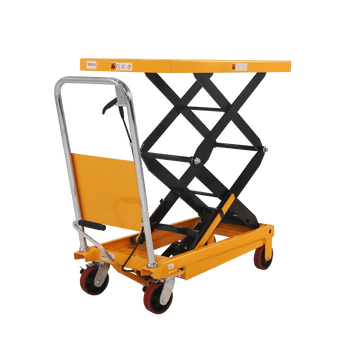 Tory Carrier Scissor Lift Table includes a lifting design with a manual hydraulic table pump to boom up and down. This lift table lift and lower loads. A durable hydraulic pump ensures the scissor lift table has a long service life. With support plat on side of arm to ensure the safety service. The lift table is designed for vertical lifting only. Do not use the unit for lifting personnel or overhead lifting.