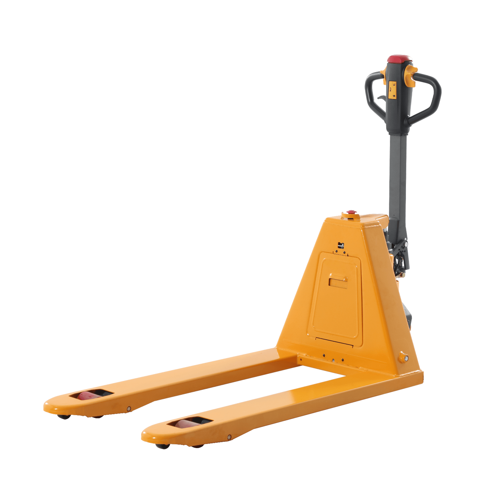 Equipped with a 24V/20Ah lithium battery, an ergonomic handle featuring a safety bully switch, and a key emergency switch, this truck guarantees reliability and ease of use. The split rocker arm distributes stress evenly for enhanced durability, while the horizontal motor simplifies maintenance. Its external charger connector allows for convenient charging, and the single fork roller ensures smooth operation, making it the perfect choice for efficient material handling.